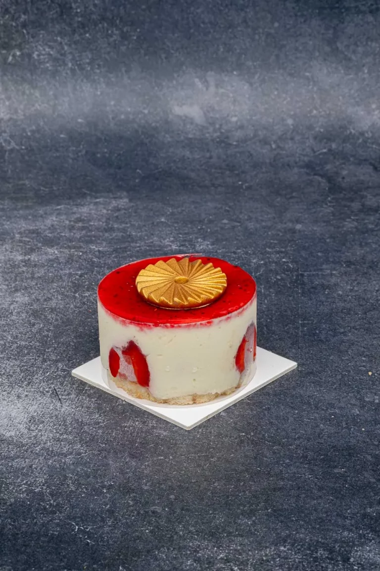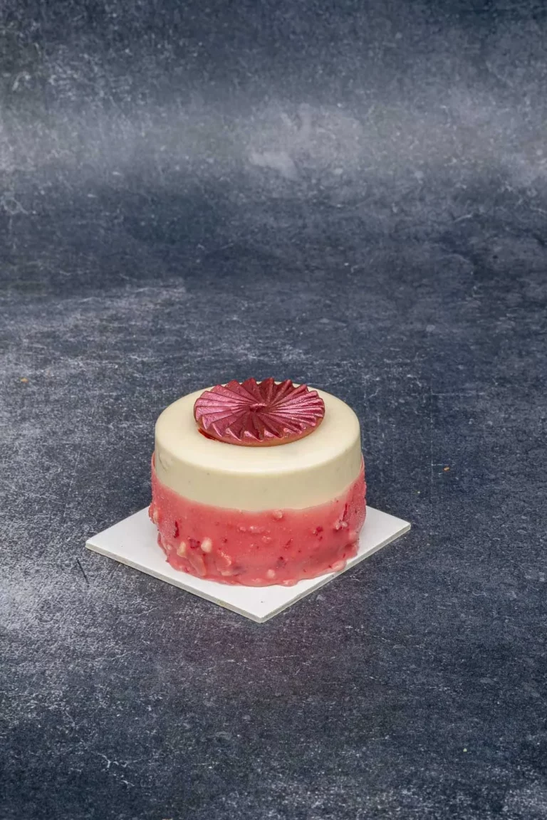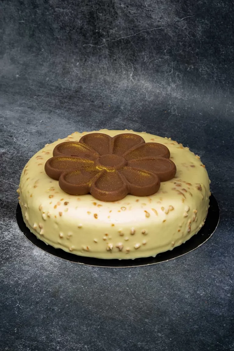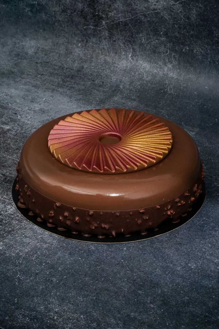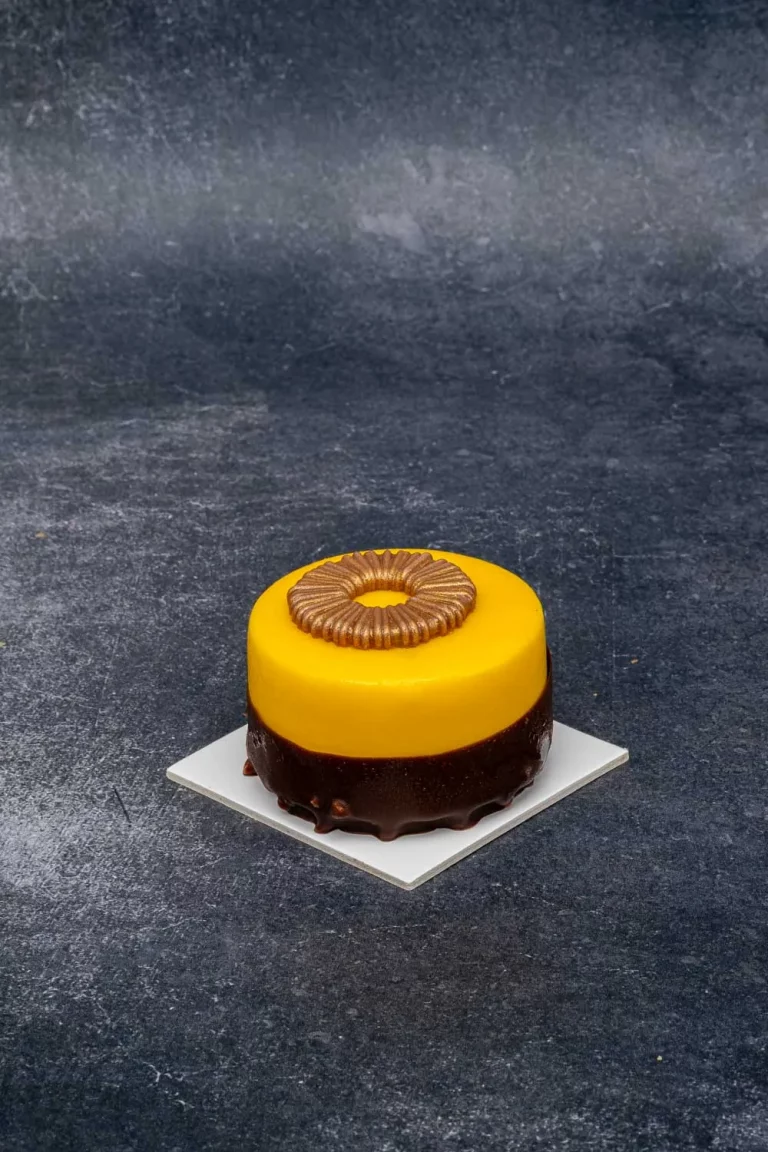 Entremet au caramel avec glaçage miroir réalisé par Maison Millet.