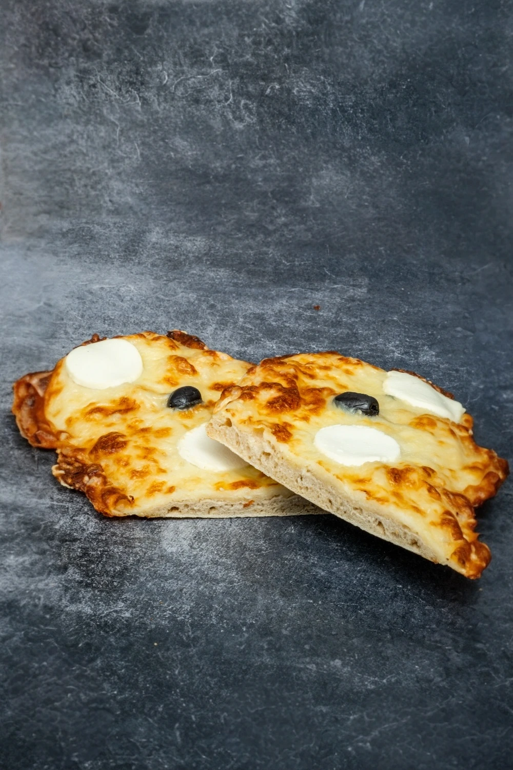 Une pâte croustillante faite maison, garnie de fromage de chèvre, tomates cerises et herbes aromatiques. Une pizza savoureuse et pratique, parfaite pour un en-cas ou un repas rapide, alliant douceur du fromage et fraîcheur des tomates.