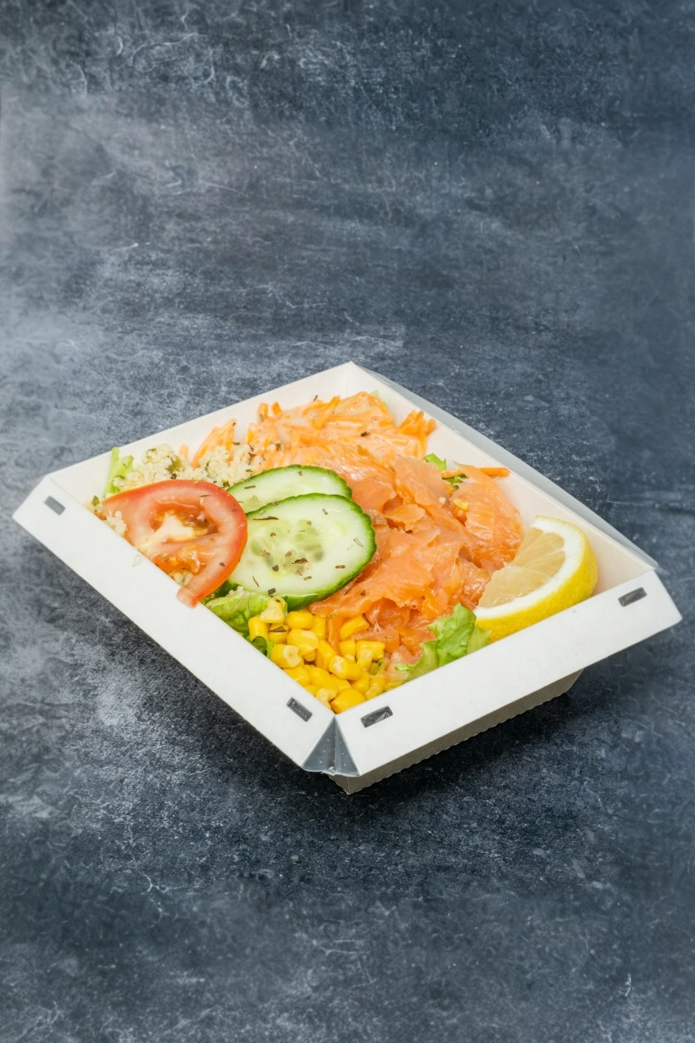Nous proposons des salades variées, composées de crudités fraîches, de pâtes, de riz ou de blé, et accompagnées de garnitures savoureuses comme saumon, thon ou poulet. Chaque salade est préparée avec soin pour offrir fraîcheur et équilibre à chaque repas.