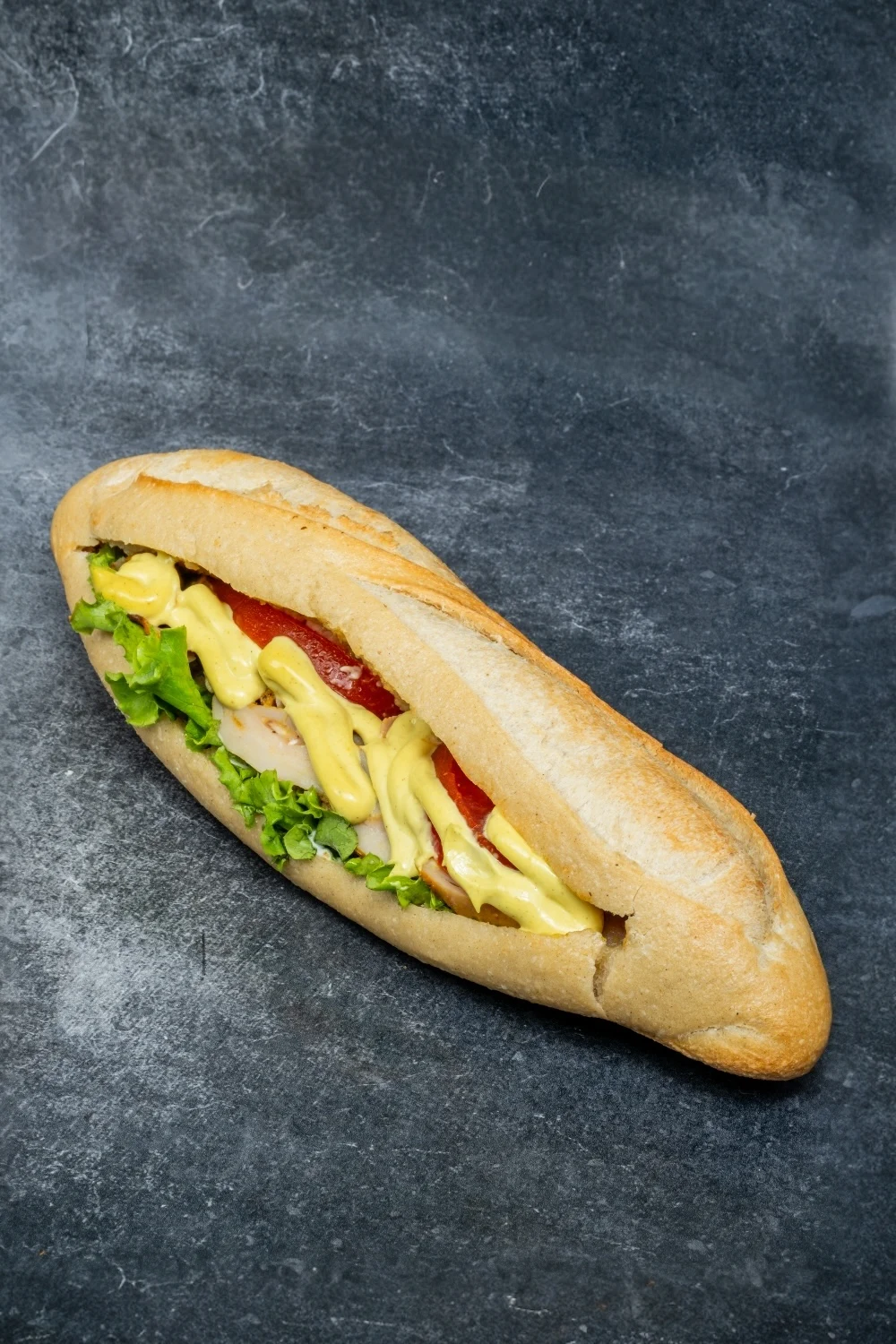Pour les amoureux de saveurs épicées, ce sandwich associe du poulet parfumé au curry, une touche de mayonnaise, des tomates fraîches et de la salade croquante. Une recette qui sent bon l’évasion.