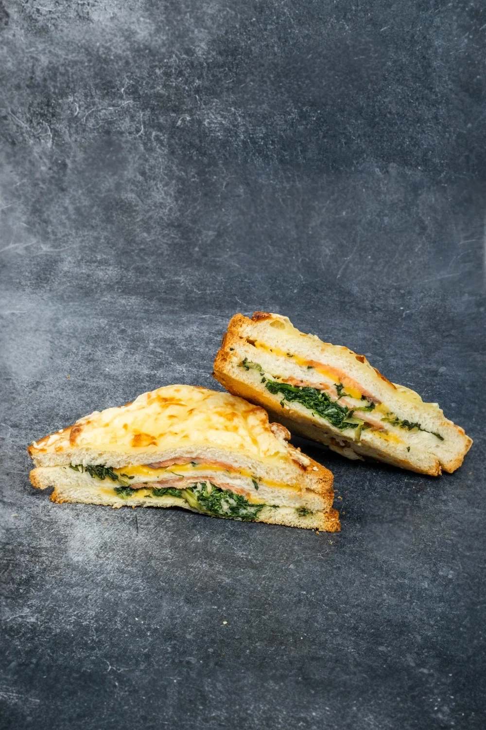 Ce Club Sandwich original combine le goût du saumon, l’onctuosité des épinards frais et la texture parfaite du pain de mie grillé. Cette version raffinée du classique Club Sandwich offre une expérience de goût unique, où le fromage de saumon se marie harmonieusement avec les épinards pour un résultat à la fois léger et savoureux. Parfait pour une pause gourmande et végétarienne.